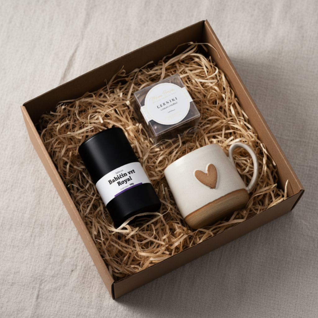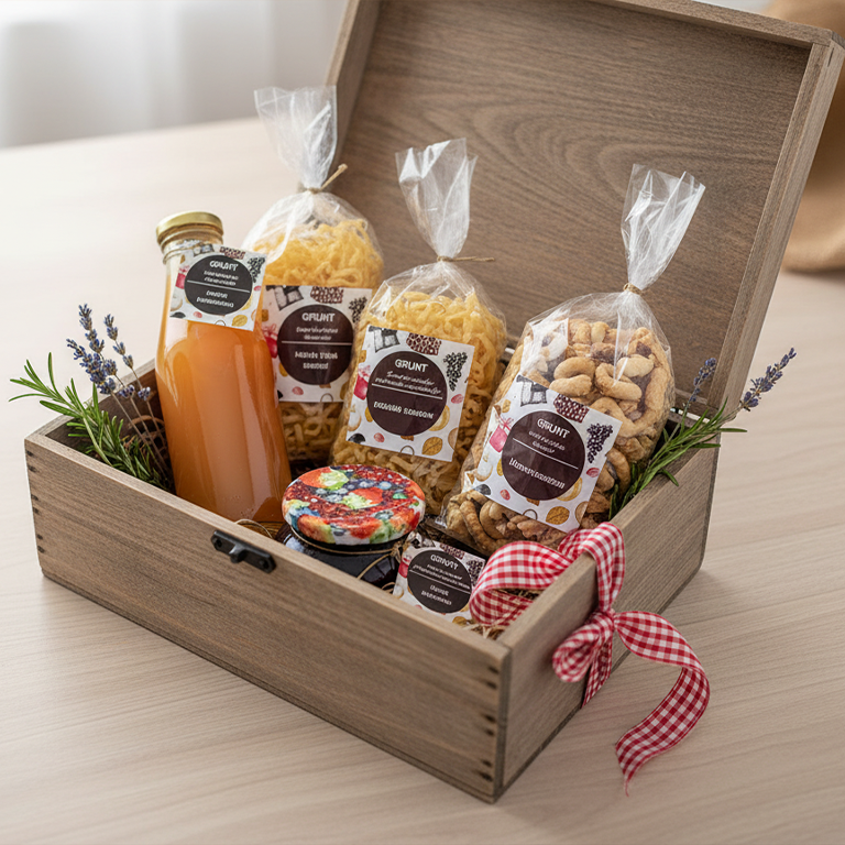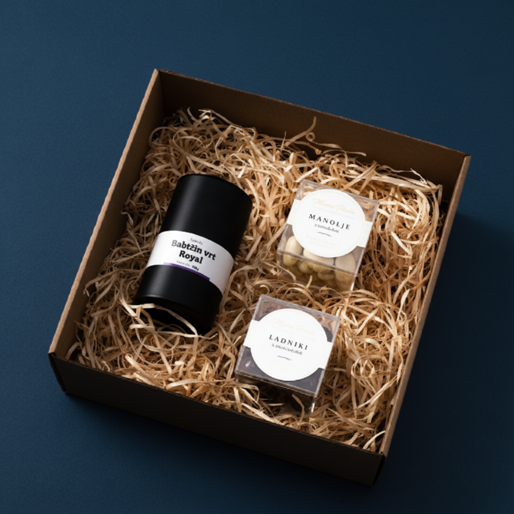 z izvirnimi darilnimi paketi lokalnih pridelovalcev.